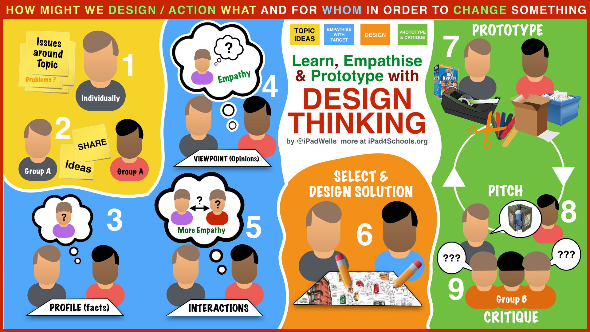 - a Focus on thinking, empathy and prototyping ideas immediately.